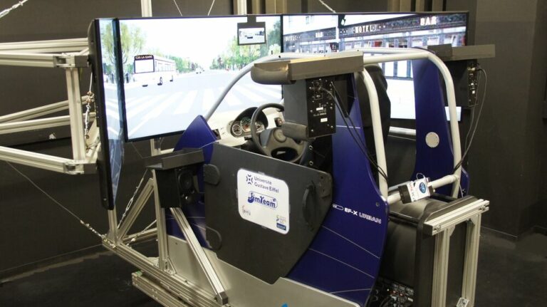 The SimTeam immersive mobility simulators form a multi-site platform of Université Gustave Eiffel, located on the Marne-la-Vallée and Versailles campuses. These simulators are used to evaluate future urban and road infrastructure, as well as to test new mobility assistance concepts and signaling systems. They enable in-depth analysis of how users perceive, understand, and respond to new information or alert messages.